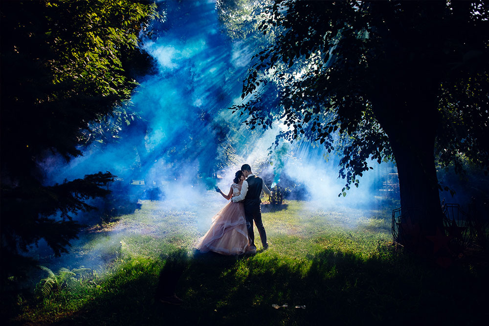 Нет, дым не оставляет следов на одежде. Вы можете зажечь дым и в платье, и в костюме.